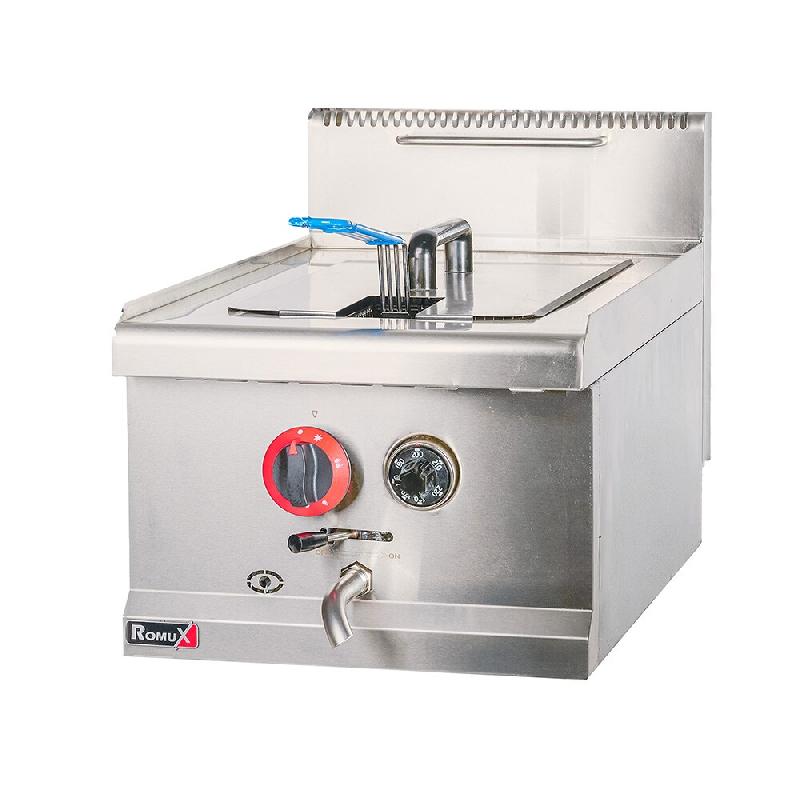 Friteuse À Gaz Naturel Professionnelle en Acier Inoxydable de 14 Litres de Table ROMUX pour hôtellerie, bars, restaurants et services de restauration.