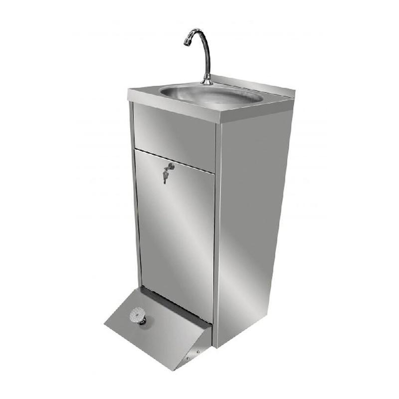 Romux® Lave Mains en Acier Inoxydable pour Restauration sur piètement avec Commande à pied 450x550x850 mm | Lave Mains Professionnel Cuisine - 8435