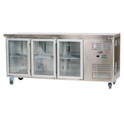 Romux® Table Réfrigérée Positive 3 Portes Vitrées 180x60 cm avec Refroidissement Froid Ventilé en Acier Inox Capacité de 339 L et Puissance 750