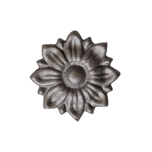 Cette rosace, représentant une fleur, mesure Ø55mm de diamètre sur 7mm d'épaisseur. Facile à mettre en place, la rosace détient au dos un trou taraudé M5, il vous suffira donc de la visser sur votre support. - Les rosaces sont utilisées pour habiller et décorer un portail, portillon, porte