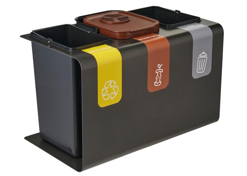 Rossignol Corbeille de tri sélectif Tribu Biodéchets - 2 x 15l + 1 x 10l - gris manganèse - 3019920520557