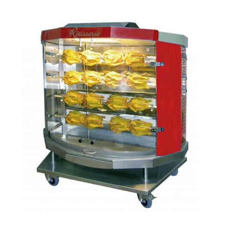 - Dimensions contenues - Production horaire des poulets à cycle continu - Possibilité de cuissons en chargement partiel et consommation réduite - Facilité et rapidité de nettoyage - Bonne visibilité et exposition optimale des poulets, rôtis, etc. pendant la cuisson - Lèchefrite avec rob