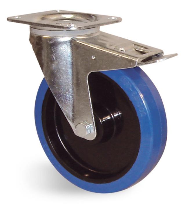 Roulette caoutchouc bleu à platine à double frein 160mm - GUITEL HERVIEU - ep5bd160-571r - 867417