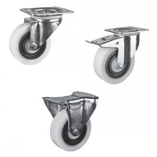 - Cette roulette charge moyenne est disponible en version pivotante sans frein, pivotante avec frein, et en version fixe sans frein.