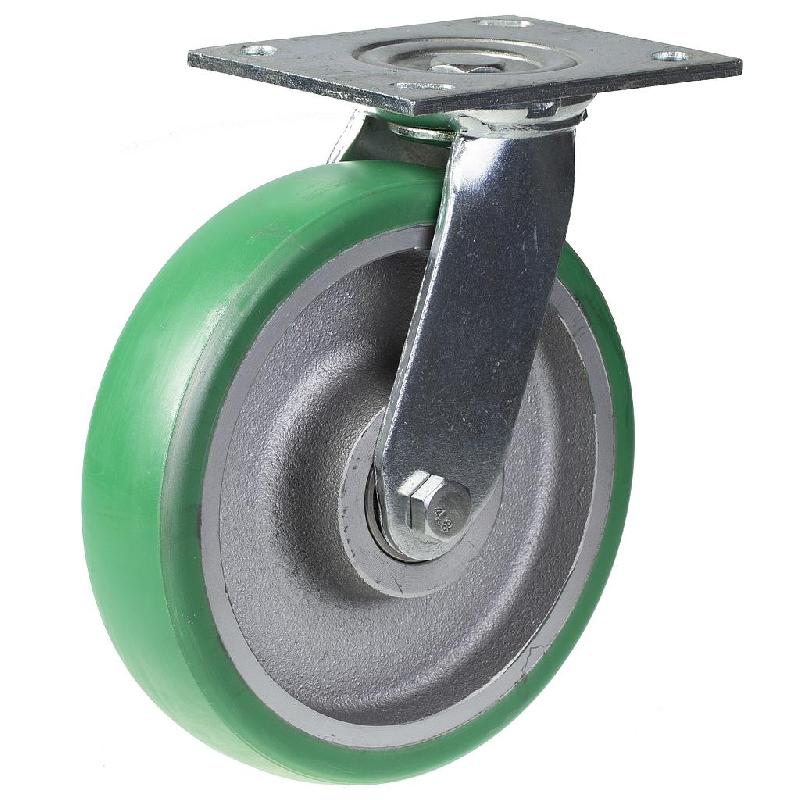 Roulette pivotante de 200 mm avec polyuréthane élastique convexe vert sur centre en fonte w