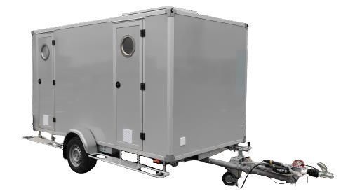 Caractéristiques techniques : - Poids à vide : 749 kg - Hauteur : 1985 mm - Largeur : 2020 mm - Longueur (hors timon) : 3385 mm - Permis nécessaire : B - Alimentation : Electrique - Équipements : - Toilettes chimiques (50 unités) - Table (x1) - Tabourets (x4)