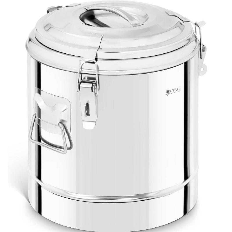 Conteneur isotherme - 15 l - Royal Catering - sol en caoutchouc - Ce conteneur isotherme en inox est conçu pour permettre le transport sûr et aisé des boissons et aliments chauds ou froids. D'un volume de 15 l, il possède une double paroi en inox à l'épreuve de la chaleur. Celle - ci renfe