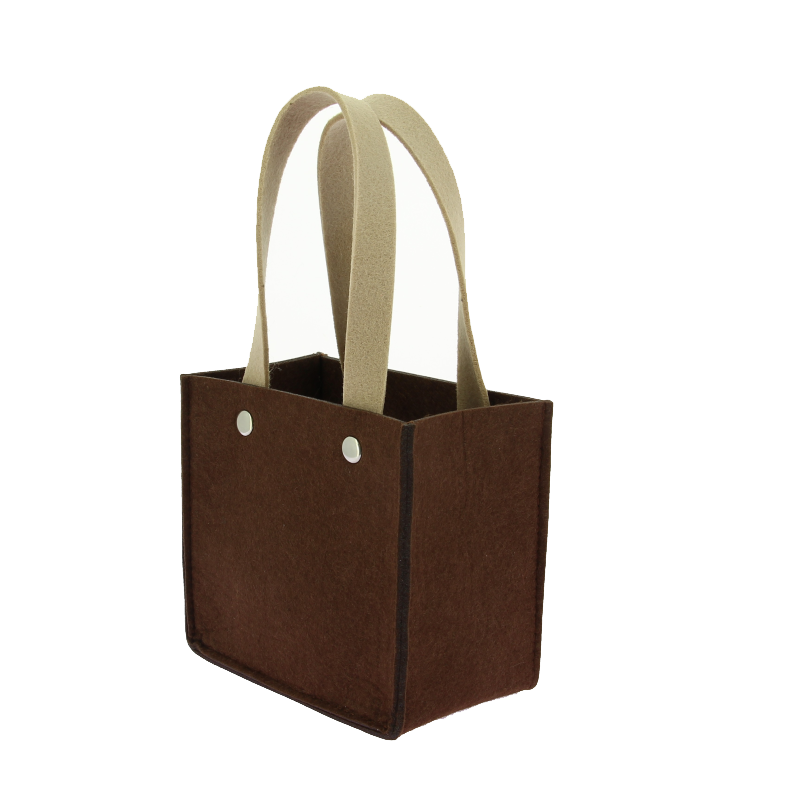 • Sac cabas 15x9x24 cm pour présenter et transporter bouteilles, terrines, spécialités artisanales... - • Réalisé en feutrine au toucher très doux et réconfortant - • Elégant mix couleur marron et poignées beige avec rivet pour un bel effet cocoon - • Réutilisable au quotidien,