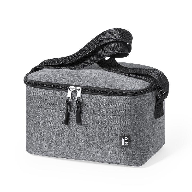 Sac isotherme en polyester RPET 600D, doublé en PEVA, avec : - 2 compartiments zippés - Bandoulière réglable - Caractéristiques : - Labélisé RPET - Couleur : gris - Poids : 280 gr -
