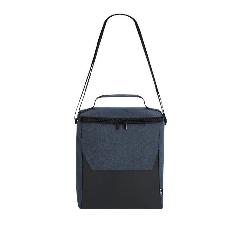 Sac isotherme en polyester RPET 600D, doublé en PEVA, avec : - 2 compartiments zippés - Bandoulière réglable - Labélisé RPET.Couleur :Bleu foncéPoids :280 gr