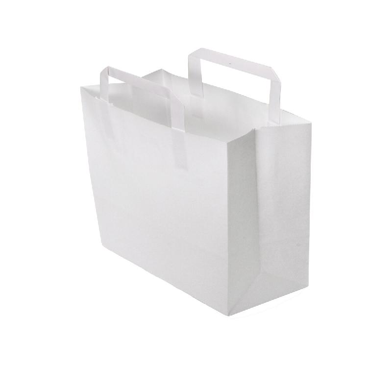 Sac NOVABAG Kraft Blanc Poignées Plates -22+10x28cm - Haute Résistance 80g/m² - Spécial Vente à Emporter - VOLUME RESTAURATION Lot de 1000 - bla