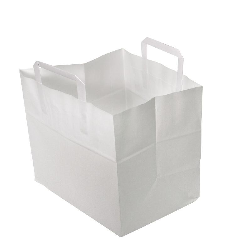 Sac NOVABAG Kraft Blanc Poignées Plates - 26+17x25cm - Haute Résistance 80g/m² - Spécial Vente à Emporter - VOLUME CHR Lot de 2000 - blanc papie