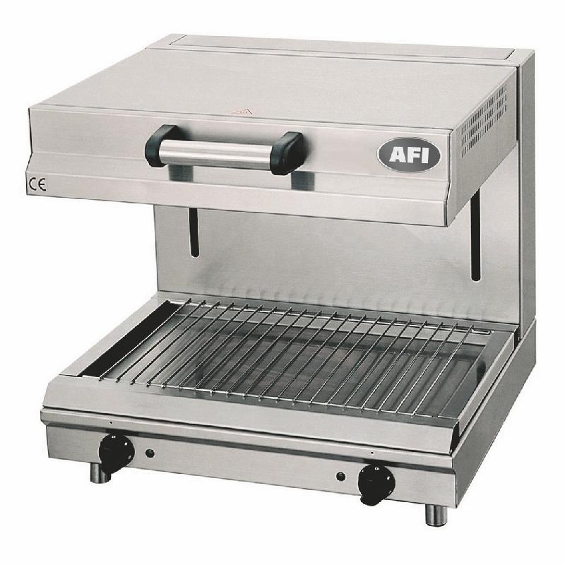 SA/61G - Promotion matériel restauration  un must vous propose Salamandre gaz avec plafond mobileCe qu'il faut savoir : - Réalisation : entièrement en acier inoxydable. - 1 zone de chauffe, 1/2 ou pleine puissance. - 2 rampes de brûleurs céramique haute pression, régulation par vannes, the