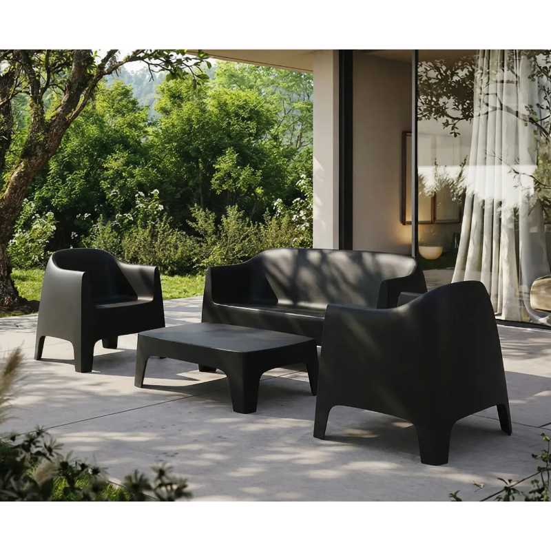 Inspirée de sculptures taillées dans la pierre, la collection SOLID de VONDOM se distingue par ses lignes géométriques et épurées. Le salon de jardin SOLID de VONDOM, comprend un canapé, deux fauteuils et une table basse, parfaits pour apporter une touche contemporaine et élégante