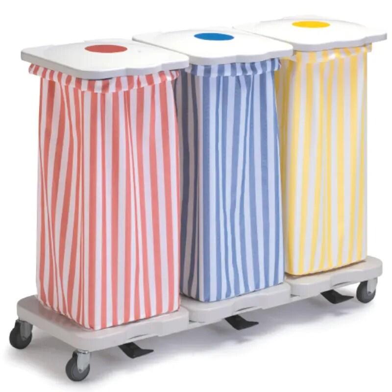 Sclessin 374.773S Chariot Porte - Sacs 3 Sacs Couvercles et Pédales Professionnel est un chariot de tri professionnel équipé de 3 sacs, de couvercles et de pédales pour un usage pratique et hygiénique. - Délai de livraison : 2 - 5 jours ouvrés