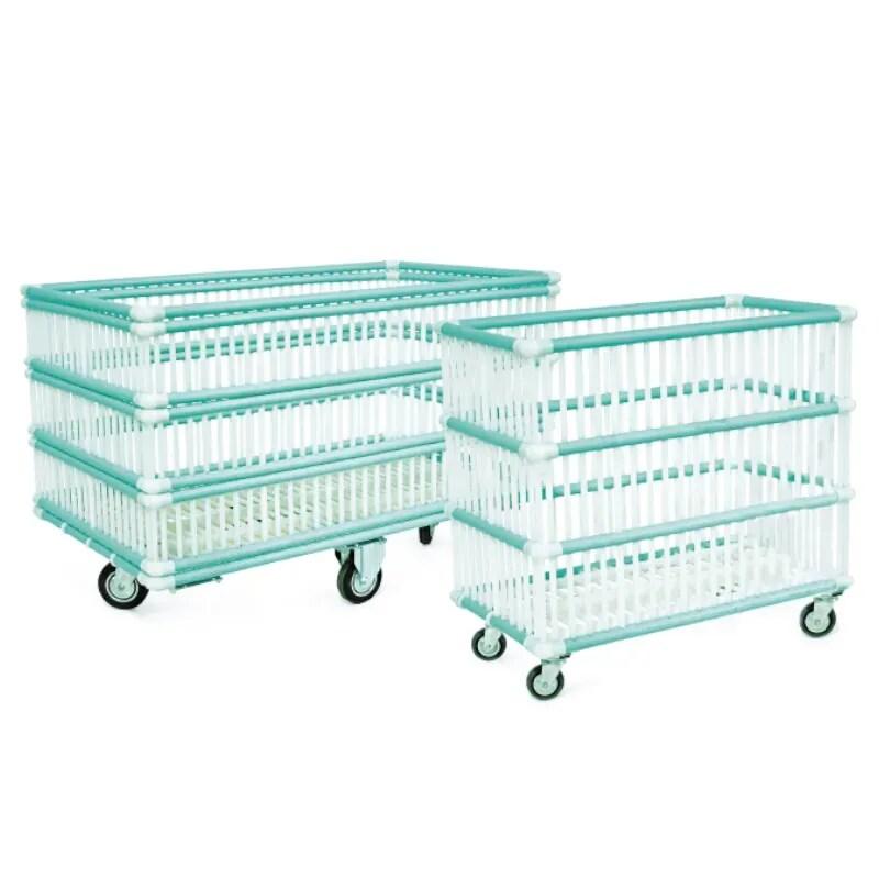 Des chariots de manutention en acier peint, équipés de roues adaptées à votre sol et parfois de ridelles ou d’un tapis en caoutchouc strié antidérapant, idéal pour les charges fragiles.