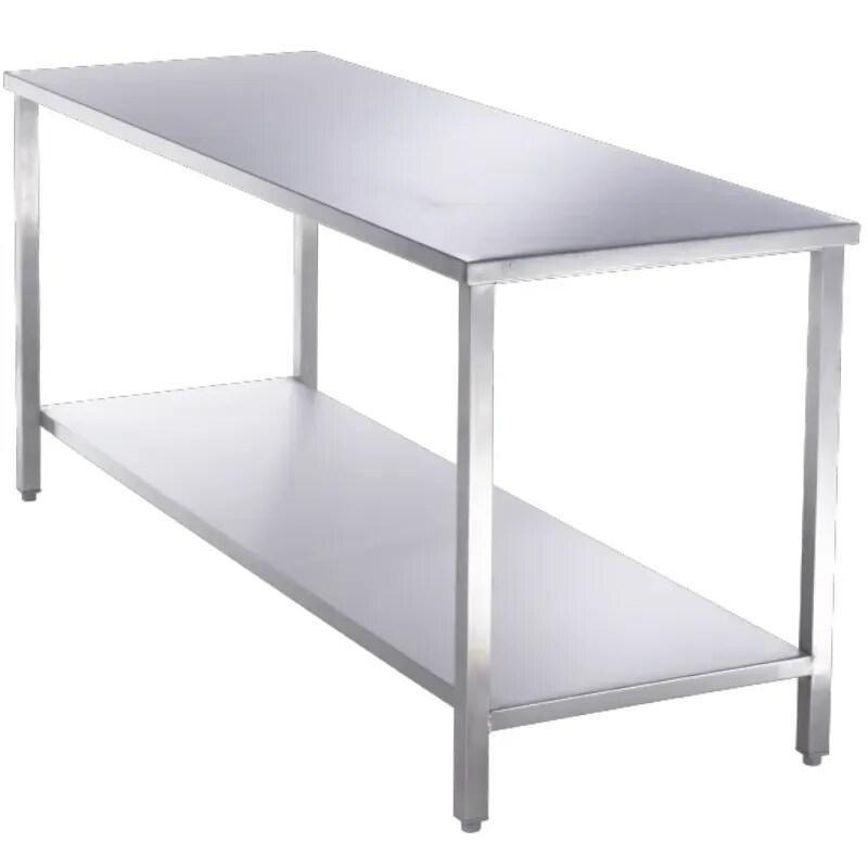 Table inox professionnelle sans rebords facile à nettoyer. Plateau en inox épaisseur 1,2 mm, fourni avec pieds en acier galvanisé.Hauteur de la tablette en acier galvanisé ajustable.Vendu dans un emballage compact pour faciliter le montage.La charge maximale est de 300 kg.Existe en différentes