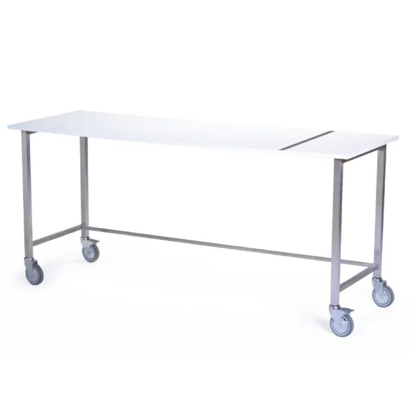 Sclessin 374.293 Table de Pliage Mobile 2 Plateaux est une table de pliage mobile professionnelle inox avec plateau bois, roulettes Ø125 mm et structure robuste de 2 m.