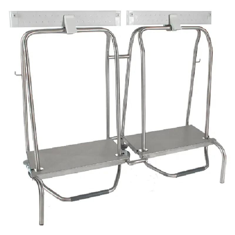Poteaux et anneaux porte - sacs réalisés en profils en alliage léger anodisé (10 micron). Ouvertures frontales pour un facile enlèvement des sacs. Plate - formes en ABS blanche avec bords arrondis. Blocage des sacs sur les supports par anneaux en acier inox avec coins en caoutchouc.Caractérist