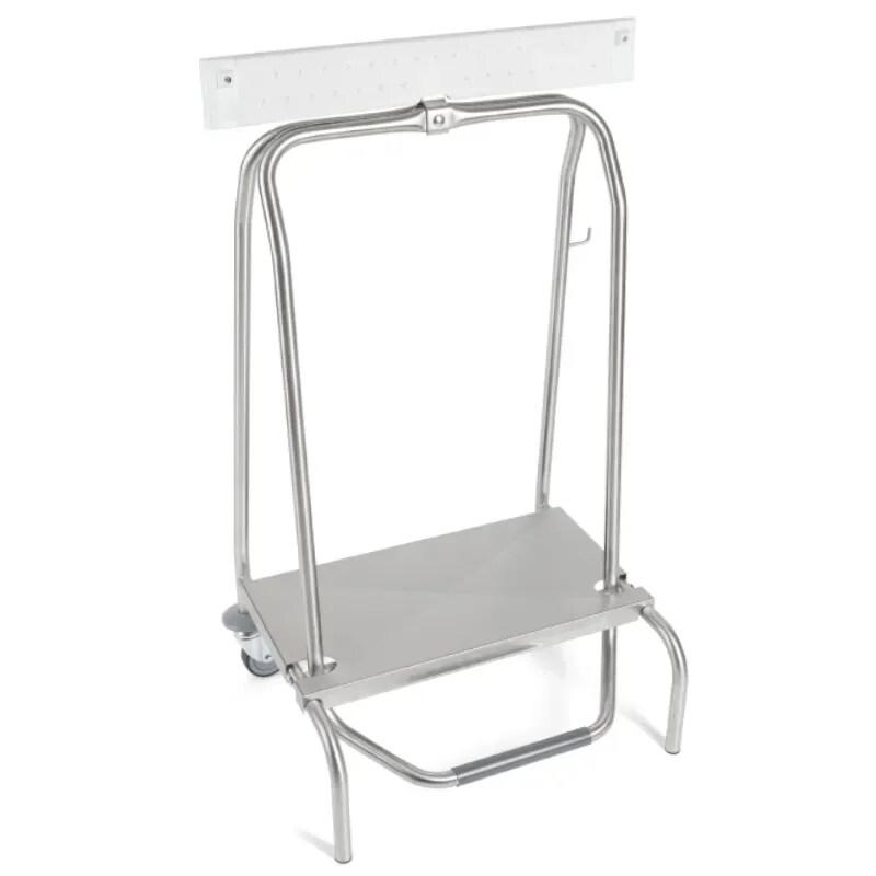 CPSPP - Tubes en acier inoxydable : 0,9 mm d'épaisseur Ø19 mm Pédale d'ouverture Pince en caoutchouc : épaisseur 8 mm 2 roulettes pivotantes avec freins Dimensions: L 590 x P 425 x H 955 mm