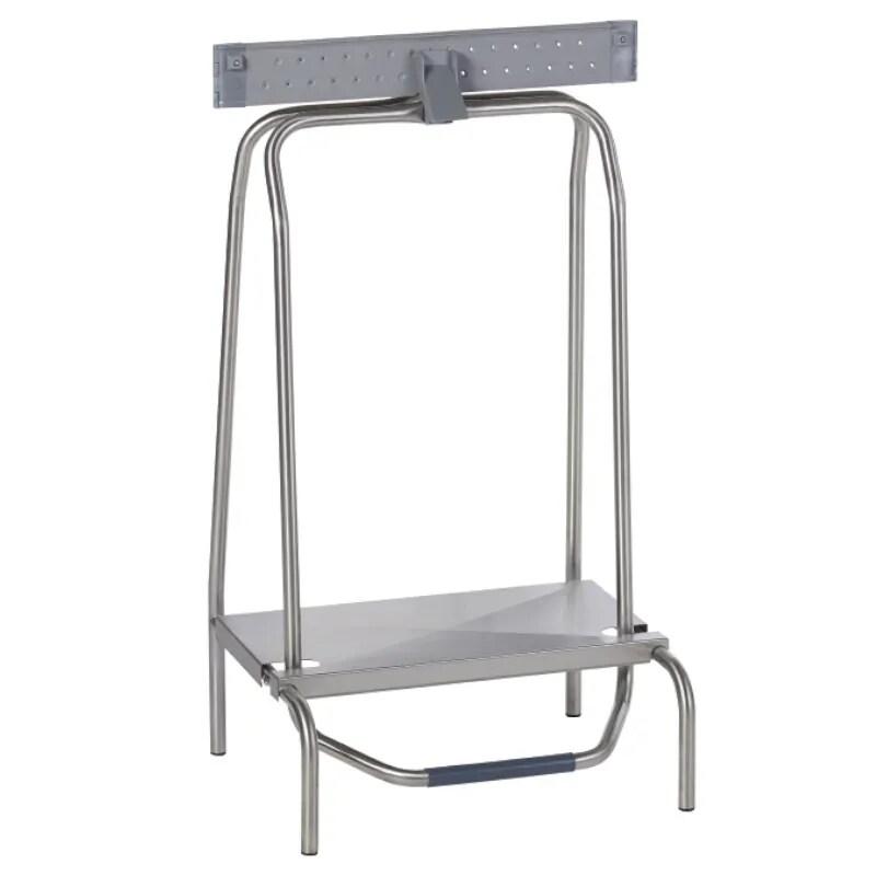 - Tubes en acier inoxydable : 0,9 mm d'épaisseur Ø19 mm - Pédale d'ouverture - Pince en caoutchouc : épaisseur 8 mm - 2 roulettes pivotantes avec freins - Dimensions : L 590 x P 425 x H 750 mm - Poids : 3,7 Kg - > Montage facile - Délai de livraison : 4 - 8 jours ouvrés