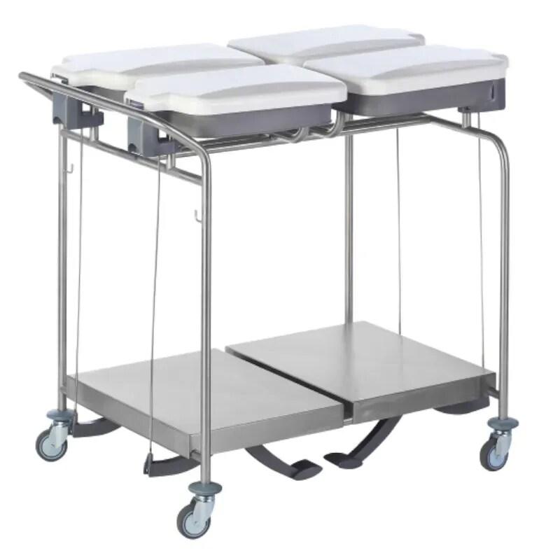 Sclessin 374.783S Chariot Porte - Sacs 4 Sacs Couvercles et Pédales Professionnel est un chariot professionnel à 4 compartiments, équipé de couvercles et de pédales pour une gestion hygiénique des déchets. - Délai de livraison : 2 - 5 jours ouvrés