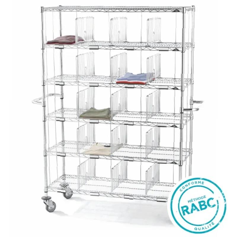 Sclessin 374.844 HYGIRACK Chariot 20 Casiers Professionnel est un chariot professionnel polyvalent équipé de 20 casiers et d'une penderie de 610 mm pour une organisation optimale. - Délai de livraison : 2 - 5 jours ouvrés