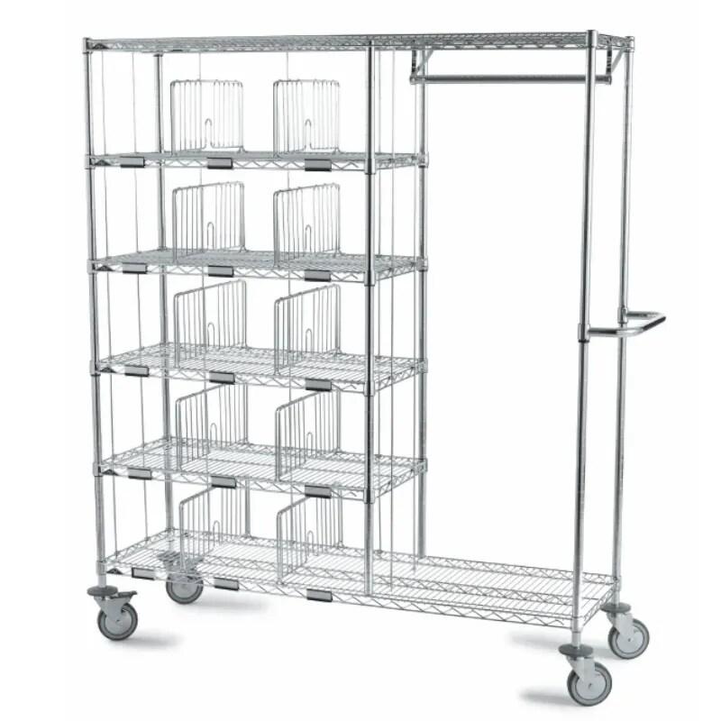 Sclessin 374.841 HYGIRACK Chariot 15 Casiers Professionnel est un chariot professionnel polyvalent équipé de 15 casiers et d'une penderie de 610 mm pour une organisation optimale. - Délai de livraison : 2 - 5 jours ouvrés