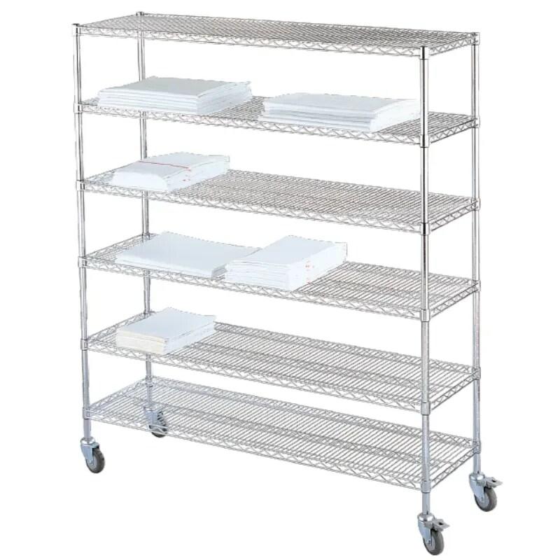 Sclessin 374.855 HYGIRACK Chariot Étagères L1830xP457mm Professionnel est un chariot professionnel modulable en acier chromé avec 4 roues pivotantes Ø125 mm. - Délai de livraison : 2 - 5 jours ouvrés