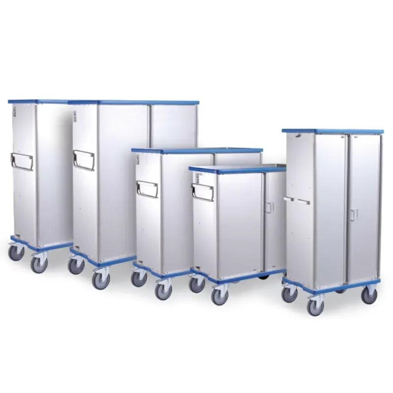 Sclessin 375.040 Armoire Professionnelle E2723 est une armoire professionnelle en aluminium anodisé de 640 L, conçue pour le lavage en tunnel et dotée d'une charge utile de 300 kg.