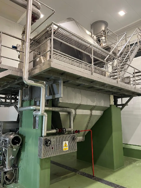 Sèche-linge d'occasion fabriqué par SAFEM, extrait d'une gamme de produits sans gluten. Fluide : Vapeur Pression de conception : 12 bar Pression maximale de service : 9,5 bar Pression d'essai : 24 bar Température maximale de service : 192°C Volume : 4,55 m3 Pression x Volume : 54,6 bar x m3 Diamètre de la cuve de séchage : 1500 x 2990 mm