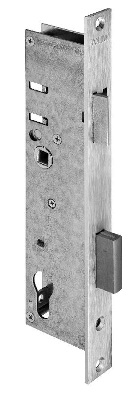 659119 - La serrure monopoint à larder de Wilka est conçue pour renforcer des portes à profil étroit, couramment utilisées dans des espaces où la robustesse est cruciale. Le mécanisme intègre un cylindre européen avec un carré monobloc qui assure une transmission efficace et fluide, optim