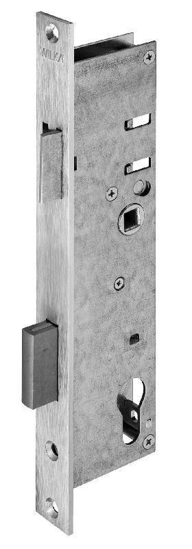 659119 - La serrure monopoint à larder de Wilka est conçue pour renforcer des portes à profil étroit, couramment utilisées dans des espaces où la robustesse est cruciale. Le mécanisme intègre un cylindre européen avec un carré monobloc qui assure une transmission efficace et fluide, optim