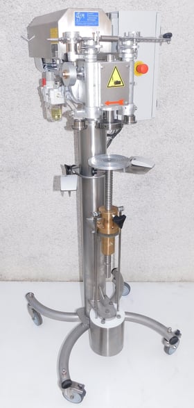 FONCTION - Sertissage automatique de couvercle sur pots inox neuf. - Caractéristiques des emballages : - Diamètre : 100 mm - Longueur : 240 mm - Épaisseur : 1 mm - Matière : inox - Autres dimensions possibles. - CONDITIONS DE TRAVAIL : - La machine est implantée dans une boîte à gant