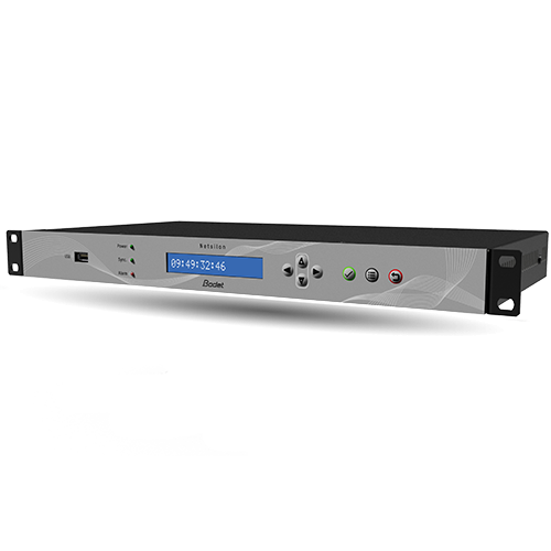 Serveur Temps - Précision : 1X10 - 11/jour avec OCXO - Holdover après 24h : 15µs - Entrée : GNSS - Sorties : - PPS - 10MHz - NTP - 4 slots pour cartes options - Alarmes : SNMP et emails, page web embarquée - Rack : 19 pouces 1U - Double alimentation : 2x 100 - 230V AC