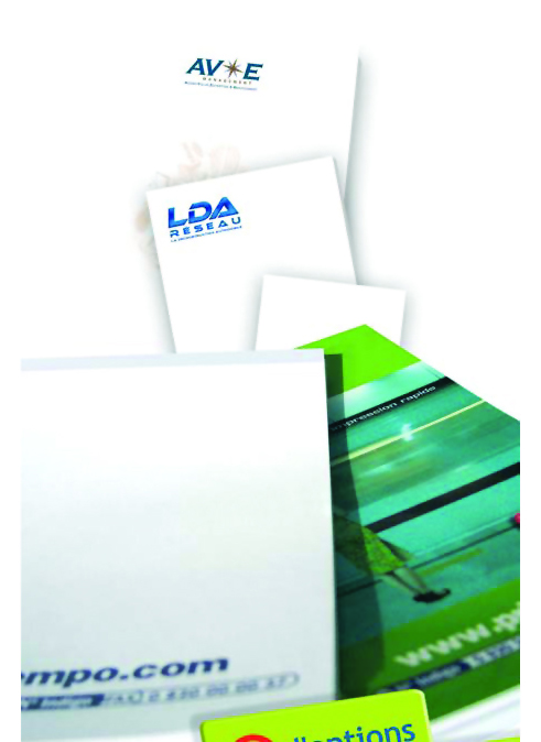 cartes commerciales,cartes de visite, têtes de lettre,enveloppes et pochettes, liasses autocopiantes, étiquettes adhésives,carnets, blocs, fiches, chemises, brochures, flyers,cartes de voeux ou d'invitation, tous documents administratifs.