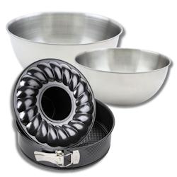 Set avec 1 Moule à manqué et à savarin 28 cm, 1 spatule Zenker et 2 bols à mixer en inox Fackelmann - noir métal 3176239936315