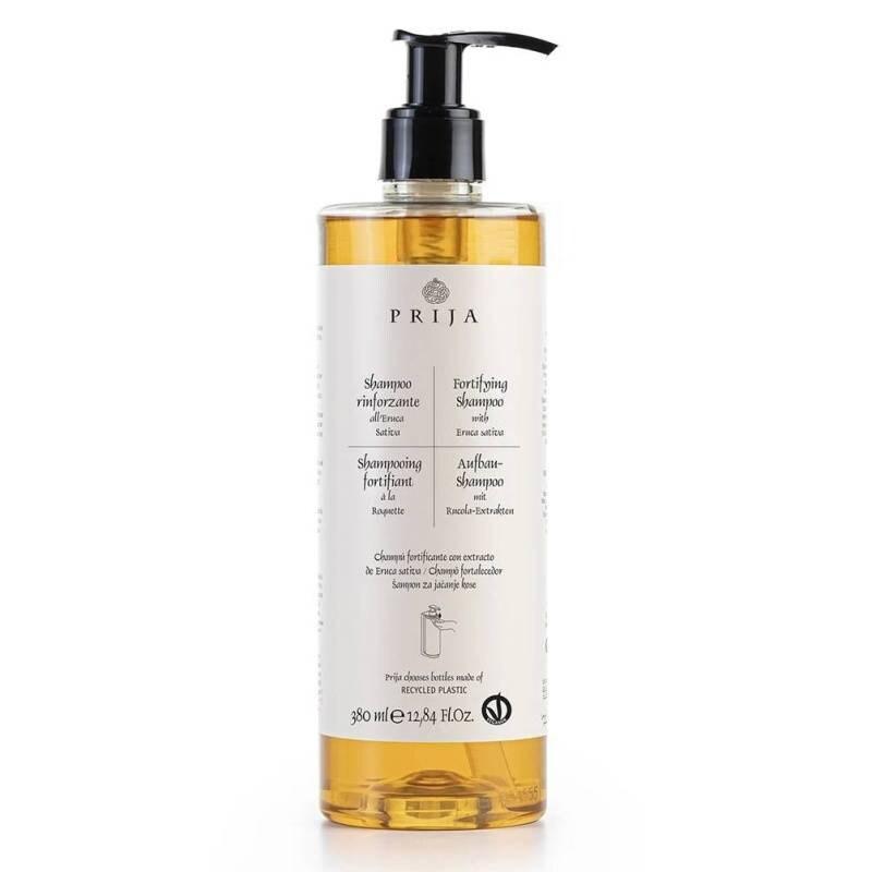 Shampoing de la gamme Prija dédié à l'hôtellerie au meilleur prix !Le shampoing Prija est adapté à tous les types de cheveux. Il permet à votre clientèle d'avoir des cheveux soyeux, brillants et revitalisés grâce aux extraits d'Eruca Sativa et de ses feuilles.Shampooing fortifiant à l'Eruca sativa, nettoyant et revitalisant formulé avec un mélange soigneusement équilibré de tensioactifs. Ce shampoing d'accueil 380ml forme une mousse douce et onctueuse qui nettoie en douceur sans agresser la structure du cheveu.Enrichi en extrait d'Eruca sativa, il nettoie doucement en contribuant à recompacter la cuticule du cheveu, améliorant ainsi sa brillance.Cultivée et appréciée dans l'antiquité dans toute la région de la Méditerranéen, l'Eruca est une plante très résistante et adaptée aux terrains les plus inaccessibles. À partir des feuilles, des extraits riches en minéraux et antioxydants sont obtenus.Sa qualité premium est très appréciée dans le milieu hôtelier car le shampoing d'accueil Prija a été fabriqué avec des produits de haute qualité.Pour offrir une expérience encore plus luxueuse, optez pour des chaussons de bienvenue dans vos hôtels et spas.