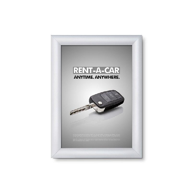 Cadre d'affichage clic clac en aluminium. - Différents formats disponibles : de A1 à A5. - 2 couleurs disponibles : argent et noir. - Son système clic - clac vous permet d'insérer facilement vos affiches. - Feuille PVC de protection fournie afin de protéger vos documents. - Facile