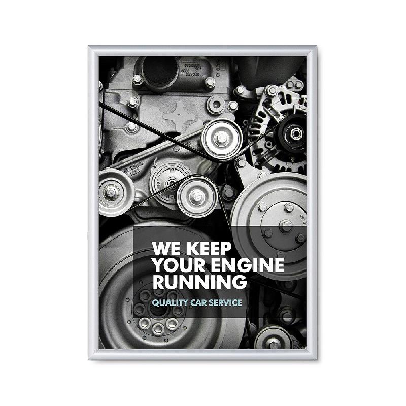 Cadre d'affichage clic clac en aluminium. - Différents formats disponibles : de A1 à A5. - 2 couleurs disponibles : argent et noir. - Son système clic - clac vous permet d'insérer facilement vos affiches. - Feuille PVC de protection fournie afin de protéger vos documents. - Facile