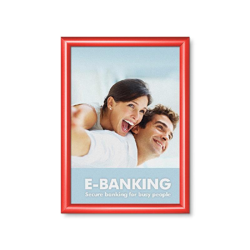 Mettez en valeur votre affiche publicitaire grâce à l'élégant et résistant cadre à clip standard de 25 mm. Ce modèle de 25 mm de large, le plus vendu, est idéal pour les affiches de format A5 à A0. Son système d'ouverture frontale permet de changer facilement d'affiche sans décrocher le c