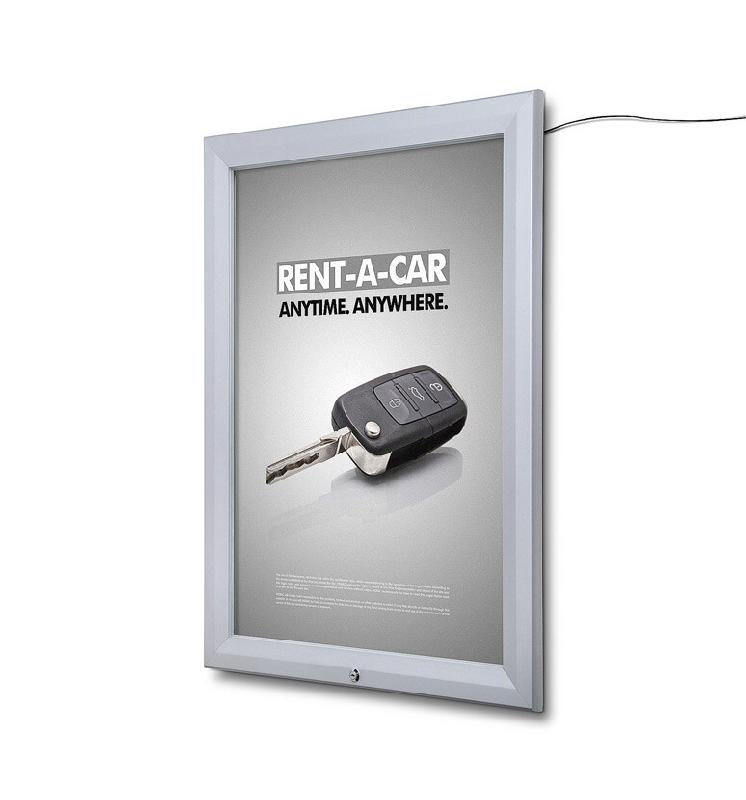 Mettez en valeur votre affiche publicitaire extérieure grâce à ce présentoir LED. Un éclairage uniforme et lumineux la mettra en avant. Le cadre en aluminium anodisé argent est doté de profilés articulés de 15 mm pour insérer votre affiche, protégée par un verre de sécurité. Changer d'affiche est simple et rapide grâce aux profilés clipsables. Conçu pour une utilisation extérieure, il est certifié IP54 pour sa résistance aux intempéries. Idéal pour les magasins, les entrées de centres commerciaux, les aéroports et les espaces publics.