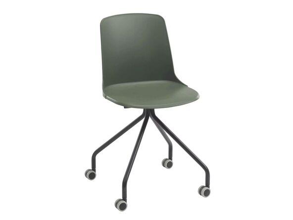 Siège mobile sans accoudoirs avec coque en polypropylène, piètement noir à roulettes et 5 coloris au choix. Livraison rapide.
