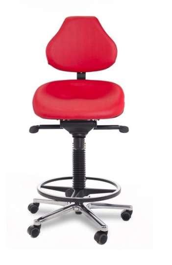 SIÈGE « ASSIS - DEBOUT » RÉGLABLE EN HAUTEUR - Dossier et assise : En polyuréthane thermoformé - Dossier : À contact permanent - Repose - pieds : Chromé et réglable en hauteur - Piètement : Sur patins -