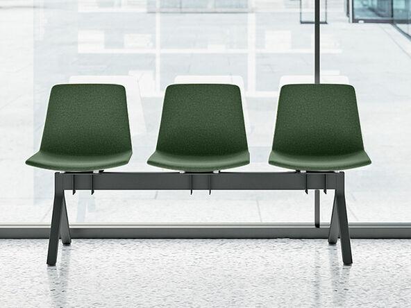 Poutre conçue pour les espaces d'accueil ou d'attente - Caractéristiques - 2 modèles de sièges : - Dossier et assise en polypropylène - Dossier en polypropylène et assise en tissu disponible en plus de 60 coloris. - 7 modèles : poutre de 2 à 5 places avec possibilité de remplacer un si