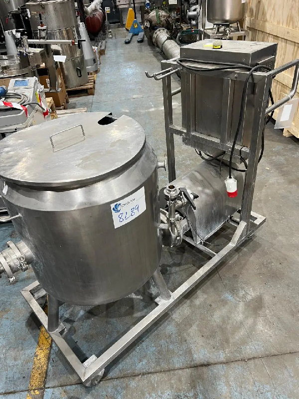 Skid de cuve en acier inoxydable d'occasion avec manchon et pompe vide -
