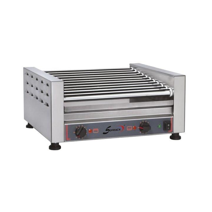 Chauffe saucisses SOFRACA 9 rouleaux - Interrupteur marche/arrêt - Doseur d'énergie et voyant de contrôle - Moteur haute performance - Deux zones de chauffes indépendantes - Ce chauffe - saucisses à rouleaux est apprécié dans les kiosques à haut débit ou dans les manifestations. Pour u