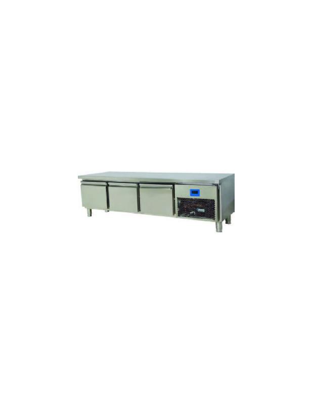 Soubassement réfrigéré 3 portes, construction extérieure et intérieure en inox AISI304.