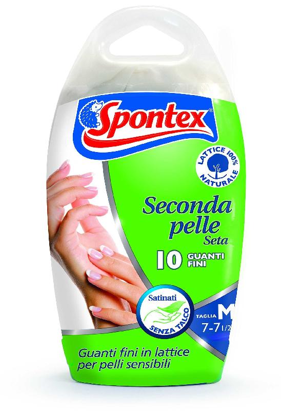 SPONTEX - Gants jetables en latex effet satiné - Seconde Peau Soie - Taille moyenne 9/10