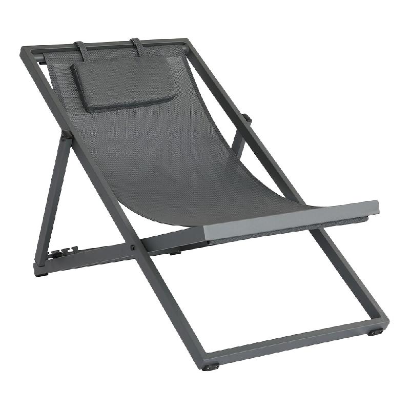 Oviala Business Lot de 2 chiliennes en aluminium inclinable 4 positions noir - noir polyester 112563